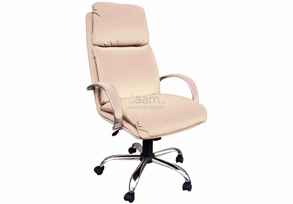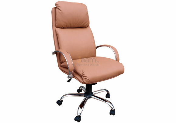 Кресло для руководителя Надир хром №20241 - высота спинки: 73 см, высота от пола до сиденья: 48/58 см, диаметр крестовины: 70 см, ширина спинки: 55 см, объем: 0,45 м3, вес: 25 кг, механизм качания без фиксации, ограничения по весу: 120 кг, основание: металл, каркас: немонолитный, производитель: россия и снг, подголовник, подлокотники, поясничный упор, регулировка по высоте.